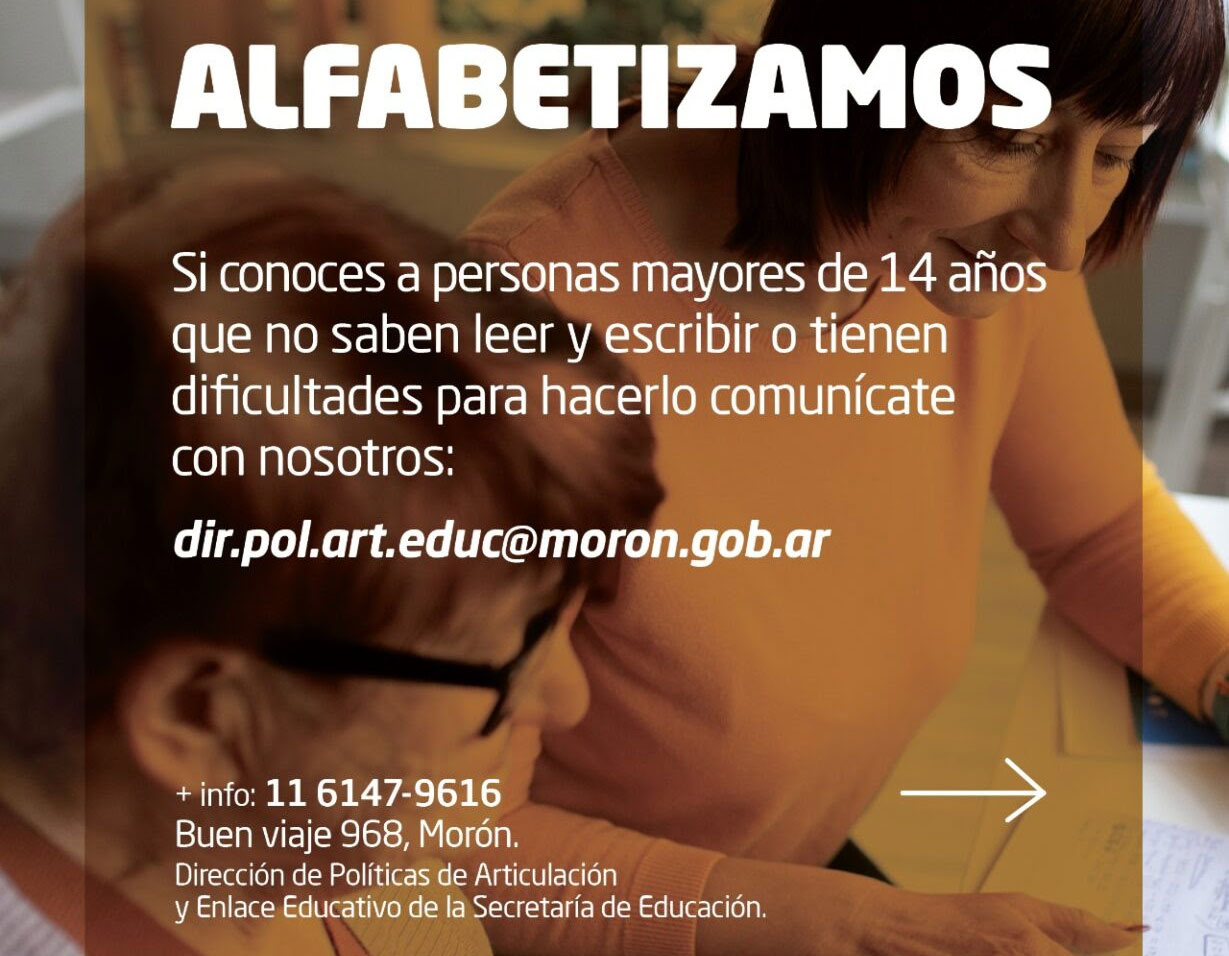 El Municipio de Morón impulsa espacios de alfabetización para personas mayores de 14 años que no hayan tenido la oportunidad de aprender a leer y escribir, o que presenten dificultades en la lectoescritura. La propuesta busca garantizar el derecho a la educación y fortalecer la inclusión en la comunidad.